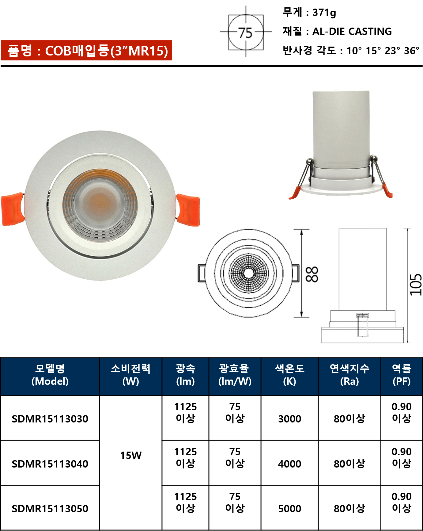 COB매입등(3”MR15)