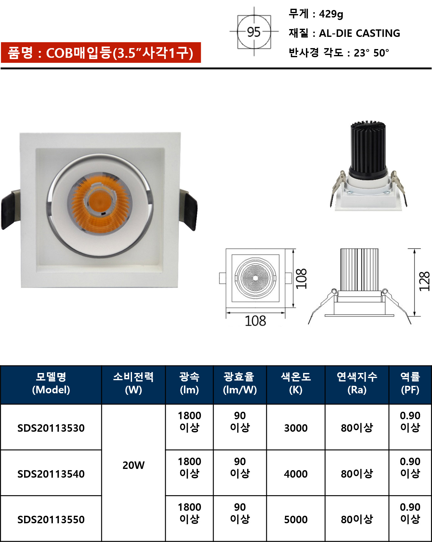 COB매입등(3.5”사각1구)