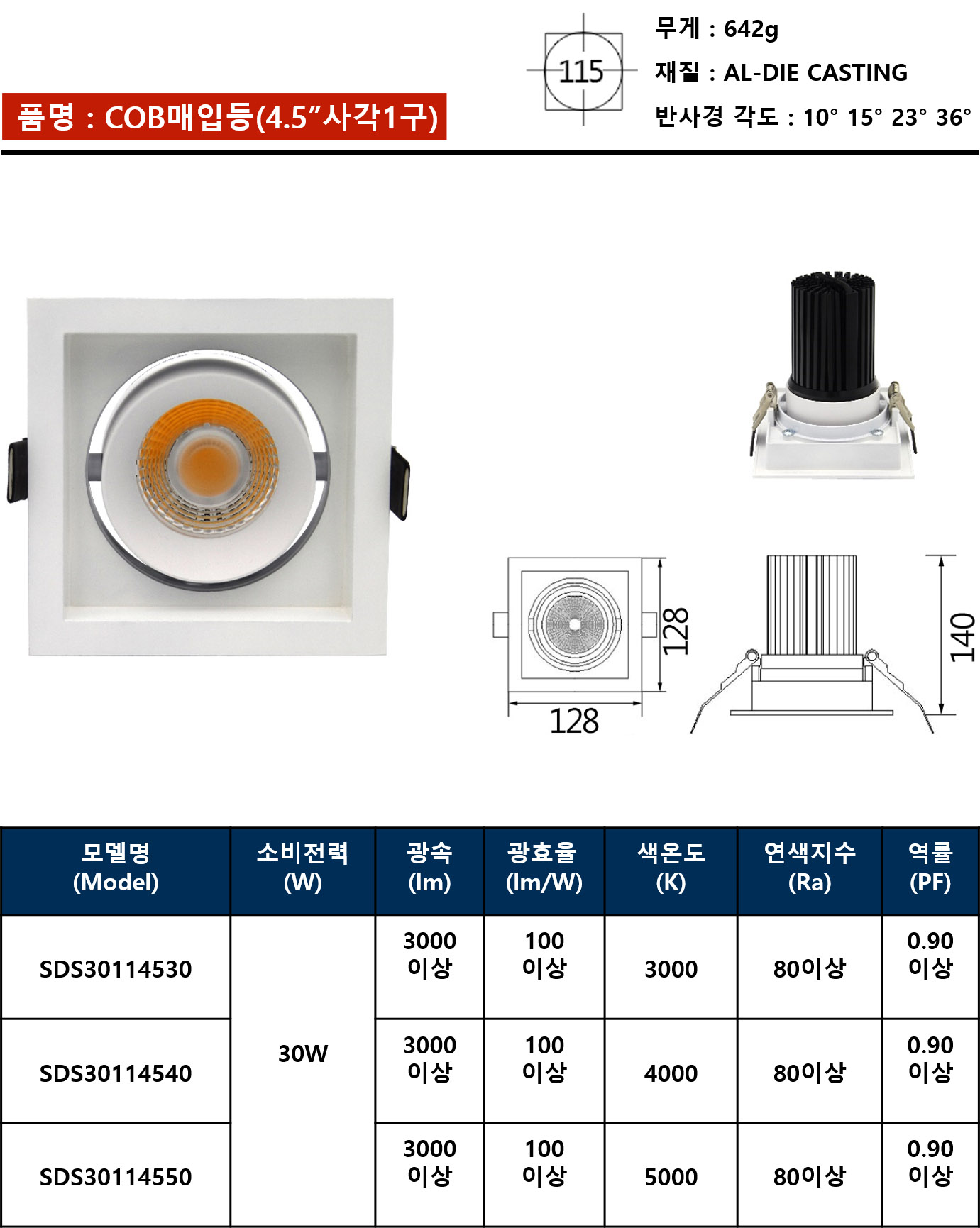 COB매입등(4.5”사각3구)