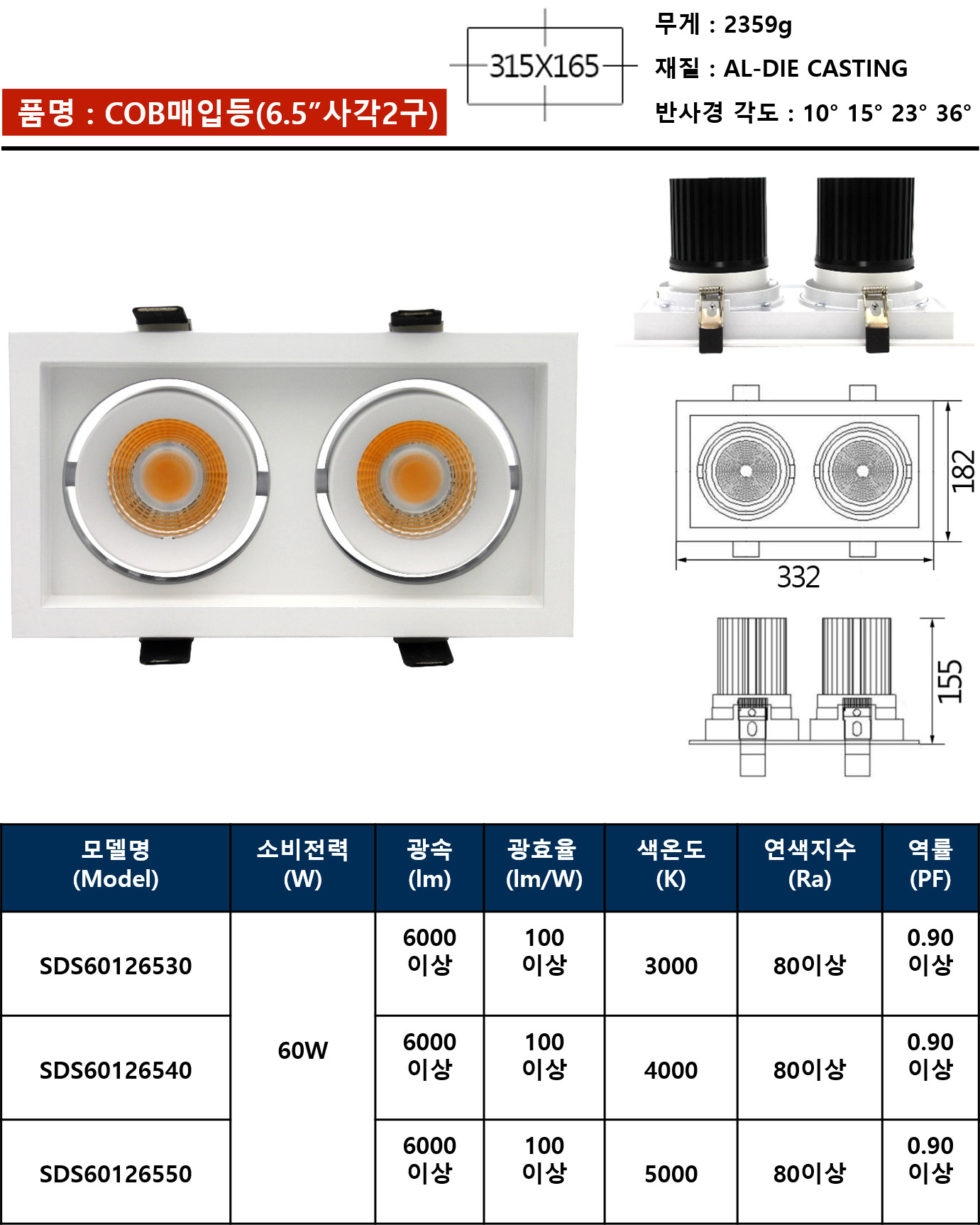 COB매입등(6.5”사각2구)